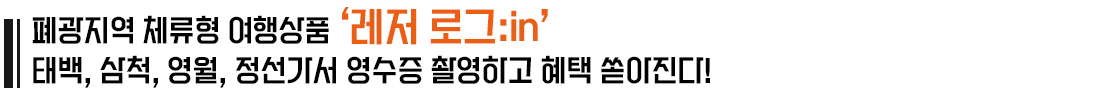참여형 여행 인증 프로그램이자 체류형 여행상품인 ‘레저 로그:IN’은 폐광지역의 대표 관광자원과 연계한 맞춤형 여행상품 ‘BIG4 패키지’를 비롯해, 지역 축제·맛집·전통시장 등을 포함한 ‘레저 투어 패키지’도 있다. 숙박, 교통, 관광, 음식이 모두 포함된 코스로 구성되어 처음 방문하는 관광객도 쉽게 지역 레저를 경험할 수 있도록 편의성을 높였다.