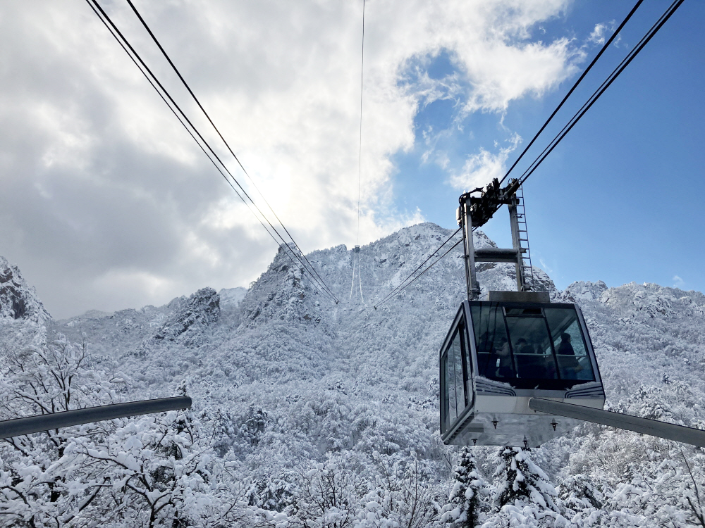 해발고도 700m에서 1,381m까지, 무장애 케이블카 타고 설경 만끽
