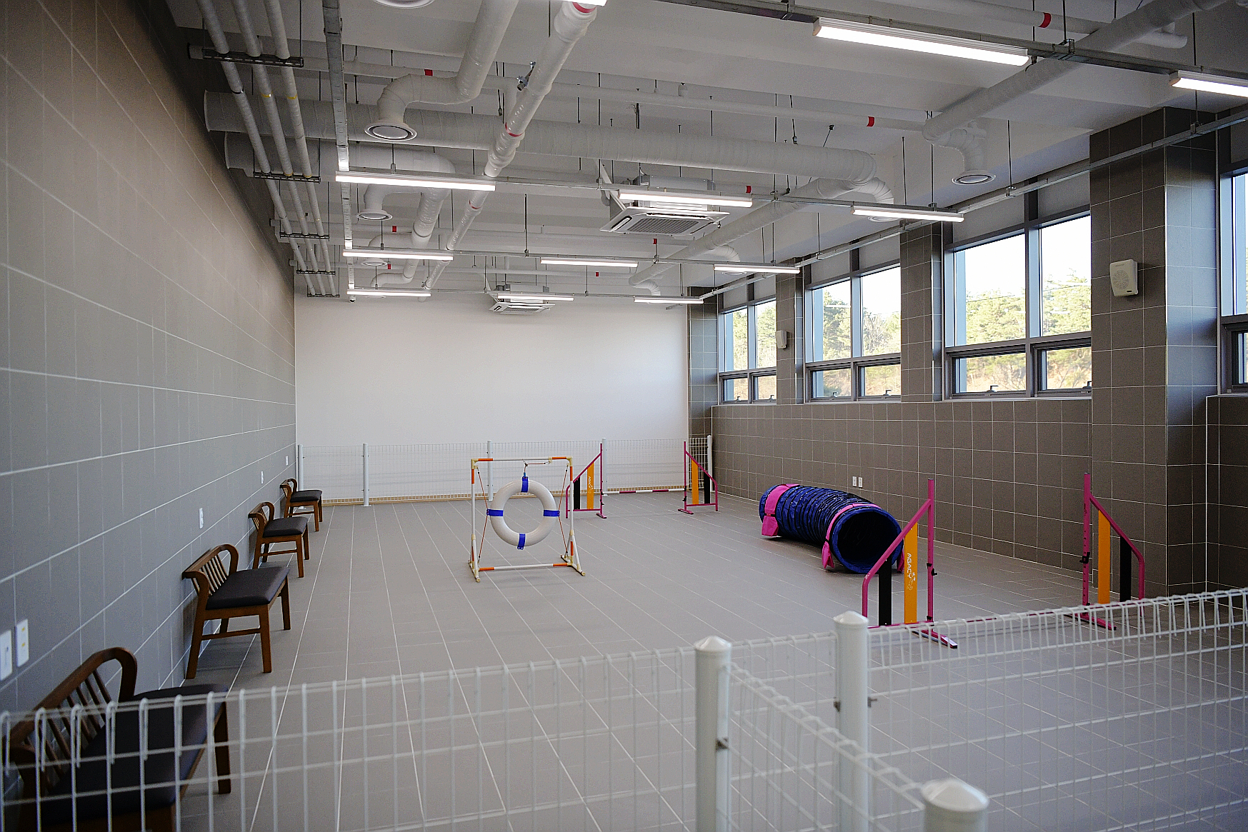 로비 뒤편으로는 날씨 걱정 없이 반려견이 마음껏 뛰놀 수 있는 중소형견 전용 실내 놀이터가 조성돼있고, 개별 욕조, 드라이룸 등 전문 설비를 갖춘 동물 클리닉실이 반려동물의 청결과 건강까지 세심하게 배려해 준다. 올해 말에는 센터 이용 중 휴식을 취할 수 있는 아늑한 카페와 지역 농산물을 판매하는 로컬푸드 판매대가 들어서 편의를 더할 예정이다.
