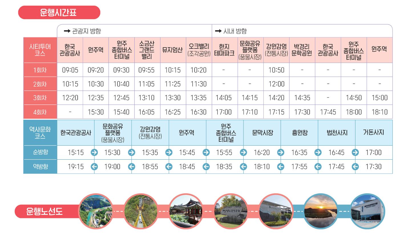 ‘소·빙·산’. 이 3곳을 방문하는 것만으로도 원주 관광은 하루의 시간이 부족하다. 이때 관광의 가성비를 높여주는 게 바로 시티투어버스이다. 5천 원에 비용으로 종일 시티투어버스를 이용할 수 있으며, 3곳 모두 입장권 할인까지 제공하니, 시간과 비용 모두 절약해주는 원주 관광의 효자 녀석인데, 기회가 된다면 꼭 한번 이용해보는 것을 권한다.