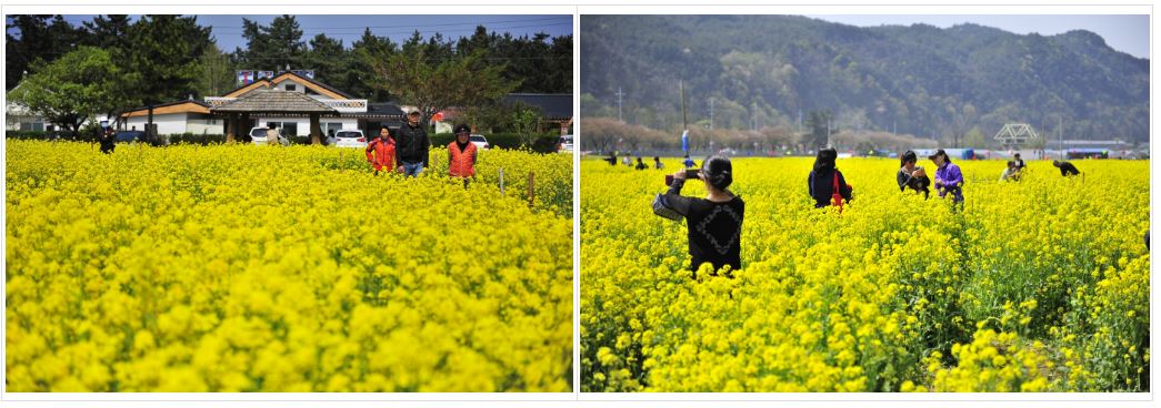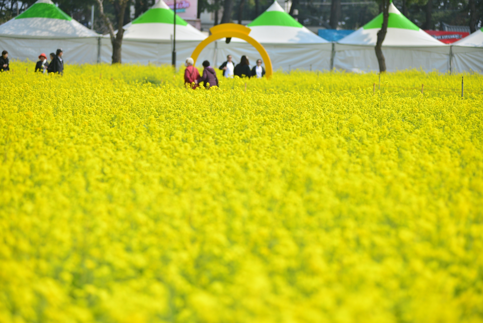 특히 올해 유채꽃이 뿜어내는 생명력은 유독 남다르게 다가온다. 지난해 가을, 한 달간 이어진 기록적인 가을장마로 인해 유채밭 일대는 심각한 습해 피해를 보았다. 자칫하면 축제를 열지 못할 수도 있었던 절망적인 상황. 마을주민들은 유채밭 소실을 막기 위해 대규모 포트 육묘로 일일이 보식 작업을 진행하는 수고를 마다하지 않았다. 위기를 기회 삼아 다채로운 꽃들로 구성된 ‘원형 화단’을 새롭게 조성해 볼거리를 한층 더 풍성하게 만들었다. 상처를 딛고 피어난 노란 꽃망울들이 유난히 눈부시게 일렁인다. 마을주민들의 땀과 소망이 그 안에 담겨 있기 때문은 아닐까.