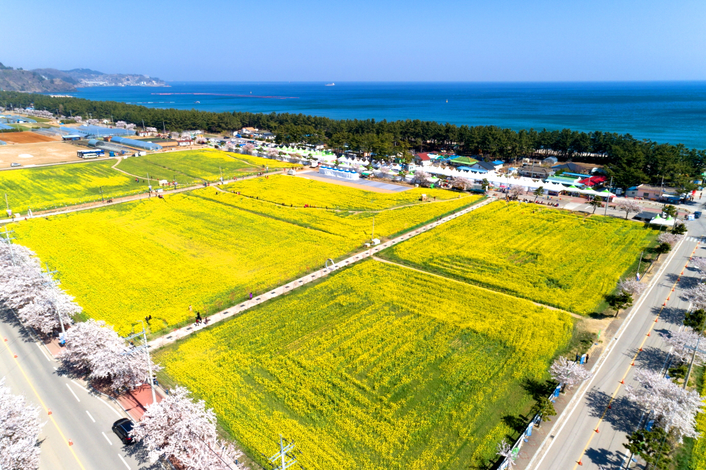 차창 밖으로 짭조름한 바닷바람과 함께 향긋한 꽃내음이 밀려들기 시작하면, 이내 탄성이 터져 나온다. 연분홍 꽃비가 내리는 벚꽃 가로수 길, 시야를 가득 채우는 샛노란 꽃망울의 향연, 그 너머로 부서지는 쪽빛 동해까지. 자연이 만든 환상적인 천연 색조가 완벽한 조화를 이루며 한 폭의 수채화를 완성하는 곳, 바로 ‘맹방유채꽃축제’ 현장이다.