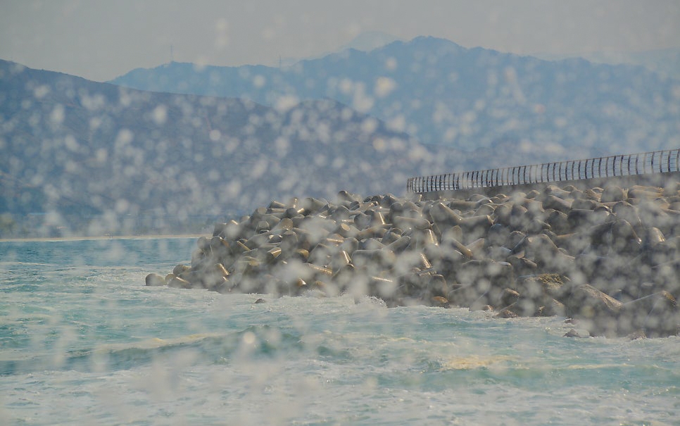 파도치는 모습을 담으면서 감성 사진이라고 위안을 삼아 본다.