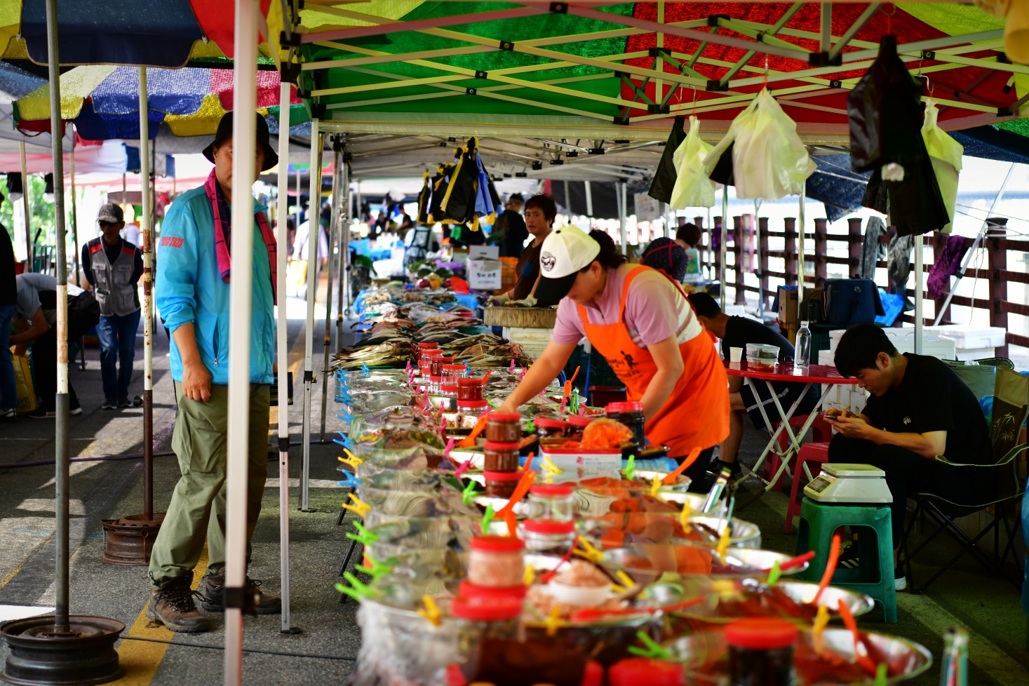 나직한 천막 사이로 오가는 미소 속에 정감이 넘치는 덕포오일장.