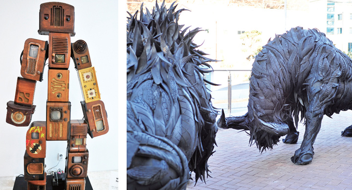 로비에 있던 백남준 作인 ‘비디오 가이’ 그리고 건물 바깥에 있던 타이어 오브제를 비롯해서 흥미롭고독특한 미술작품들이 전시되어 있었다. 그 중 한 조각이 시선을 끌었다.